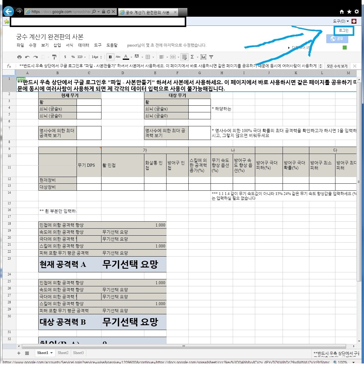 Desktop.zip [19Kb] 악사 DPS계산기 완전판 (구글문서도구)낮에 글을 올렸었는데 제가 구글문서도구 공유기능을 첨 사용해봐서 문제가 있었네요..