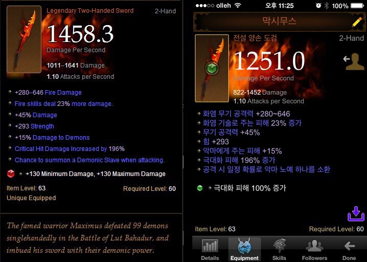 ★양손도검 막시무스의 장점을 극한으로 올려보자★![]() 안녕하세요. 얼마전에 다시 디아로 컴백한 ZERO입니다. 처음부터 지금까지 양손도검으로 달려온 야만이기도 하며 월드랭킹(프로그래스기준) TOP.1의 막시무스 보유자이기도 합니다. 막시무스가 비주류 무기일때 부터 지금까지 디아를 잠시접으면서도 유일하게 팔지않고 놔둔 템이기도 합니다. 다시 컴백하여 기존의 막시무스 성능을 극한으로 끌어올리는 템세팅과 약간의 스킬 조합을 소개해 드리고자 합니다. ![]() ![]() 제가 사용중인 막시무스 입니다. 양쪽 동일한 무기이며 보석차이에 의한 것입니다. 이리저리 바꿔가면서 사용중입니다. 막시무스의 최대 단점은 비교대상인 스코른에 비해서 낮은 디피가 가장 결정적인 단점입니다. 이 단점을 보완해주는 유 일한 부분이 바로 악마피해 증가/화염추가피해 증가 입니다. 이점을 극한으로 끌어올리면 특정상황에서는 스코른에 뒤지지 않는 성능을 발휘할 수 있는 무기가 될 수 있습니다. 제가 사용하는 템 조합은 아래와 같습니다. ![]() ★ 신비사제의 인장 + 티리엘의 권능 + 막시무스 (악마피해 증가 12%+15%+15% = 42% 증가!!) ★ 요르단 + 티리엘 (정예피해 최대 34% 증가) - 막시무스의 직접적인 장점은 아니지만 악마정예에겐 극한의 성능 발휘. ![]() 여러가지 스킬조합으로 응용가능하지만 소용돌의+화산폭발룬을 활용하여 추가 화염데미지를 총 200% 이상 올릴수 있습니다. 이러한 조합을 사용한다면 막시무스의 성능을 극한으로 올려서 사용하가능 합니다. 비록 악마와 정예및 화염관련 스킬을 사용해야하는 부분이 있지만 충분한 메리트를 가진 무기라고 생각합니다. 또한 막시무스만이 가진 악마소환 기술. 화염사슬. 이 두가지도 사냥시에 큰 보조역할이 됩니다. 아래 링크글은 악마소환시 생기는 화염사슬이 초생에 영향을 준다는 연구결과입니다. 참고하세요~ http://www.inven.co.kr/board/powerbbs.php?come_idx=2974&l=10777 모든 양손도검 야만분들 화이팅 입니다~!!!! 궁금한점은? 덧글달아주셔요!