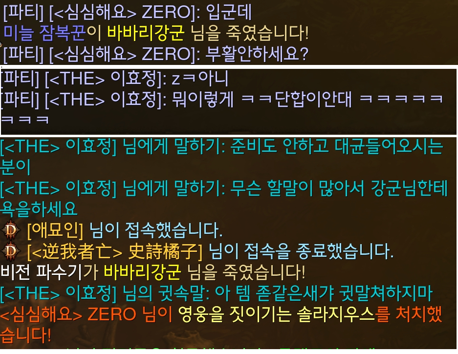 저렇게 단합안한다니 뭐라느니 이런말씀하시고, 추방하니까 같이하던 야만님한테 템이 뭐어쩌구저쩌고 욕하시고