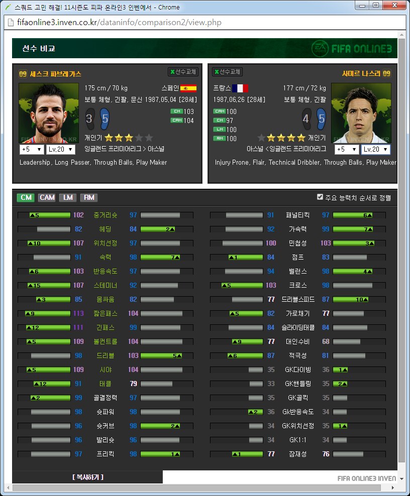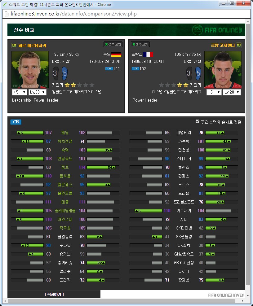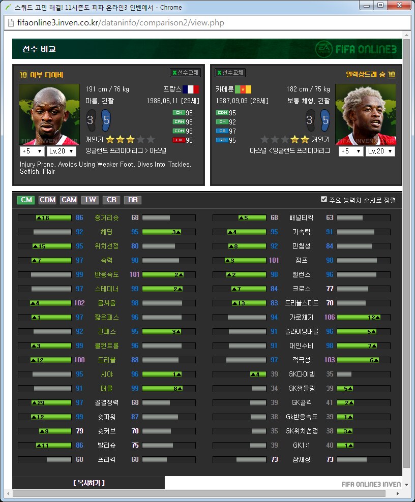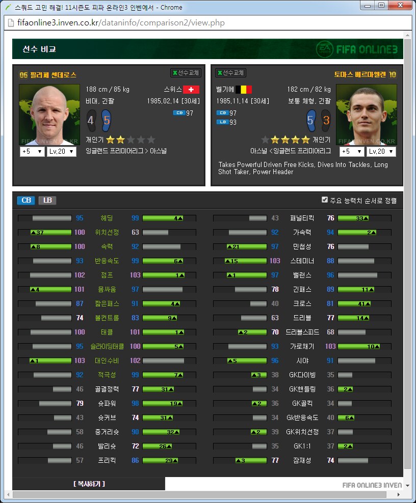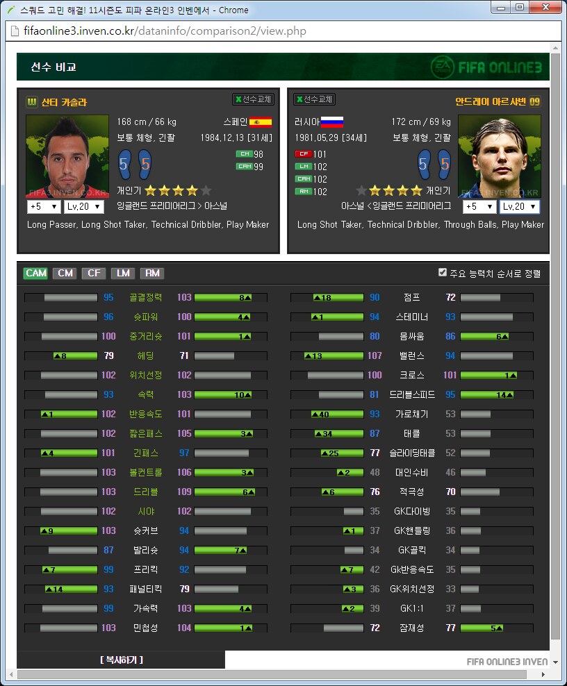 아스날 팀맞추기 가이드약 3달째 아스날을 맞추고 있는 사람입니다. 아스날 맞추면서 알게된 것들을 공유하고자 합니다. ![]() ![]() 써볼 선수도 적당히 써보았지만 제가 실력이 선수 가격이나 스탯분석을 중심으로 하겠습니다. 스탯과 가격은 5강 20레벨, 11월 2일 기준으로 보겠습니다. 아침에 일어나보니 사진올라가네요 다시 올립니다. 0. 팀을 맞출 때 원하는 팀을 맞출 때에 왠만큼 좋아하거나 의미를 두지 않으면 대장팀이나 월드컵카드팀 만나서 멘탈 깨지게 되어있습니다. 정말 좋아하거나 수집에 의미를 두고 하시길 추천드립니다. 일단 팀을 맞출때 전체 가능한 스쿼드를 예상을 해 보고 맞는 전략과 포메이션을 찾은 뒤에 팀을 맞춥시다. 팀컬러가 자신의 게임 스타일과 맞아야 그 팀을 하는 의미가 있습니다. 저 같은 경우에는 짧은 패스를 통한 빌드업에 흥미가 있어서 아스날을 골랐습니다.(바르샤는 비싸서 넘겼습니다.) 팀의 장단점도 잘 파악을 하셔야 합니다. 아스날의 경우에는 쓸만한 공격진과 가성비 좋은 중앙이 있습니다. 또한 각종 히든이 잘 분포되어 있고 플레이 스타일도 히든에 맞추어서 갈 수 있습니다. 하지만 무게감 있는 스쿼드가 힘듭니다. 대장급 카드는 앙리 뿐입니다. 하프라인 아래는 전멸입니다. 좋은 수비형 미드필더부터 윙백 풀백 센터백 골키퍼 아무것도 없습니다. 그리고 그놈의 인저리프론을 앵간하면 다 달고있습니다. 톡하면 다치는 경우가 있어서 빡치는것도 빡치지만 교체요원을 준비해 두어야 합니다. 이번 로스터패치로 꿀선수가 둘이나 없어졌습니다. 에두아르도와 밥티스타는 정말 좋은 공격수였지만 이제는 쓸 수 없습니다. 다시말해 공격진 스쿼드가 좋았지만 이제는 좋지 않습니다. 피네스와 옵뚫히든이 절대적으로 부족합니다. 이는 슛을 쏠 수 있는 구역이 제한되는 상황이 만들어지고 팀자체가 딱딱한 느낌이 들게 됩니다. 피지컬좋은 공격수도 부족합니다. 몸싸움 되는 공격수는 지루뿐이지만 지루는 속도가 눈물납니다. 즐라탄, 드록바 기대하지 맙시다. 이런점을 다 숙지하시고 팀을 맞추어야 합니다. 이제 팀을 맞추는 방법으로 가자면 각 시즌별로 특성이 있습니다. 일단 07과 10시즌은 가격이 엄청나게 쌉니다. 요즘 통합강화팩이 돌면서 전체 시즌카드의 가격이 떨어지고는 있습니다만 여전히 07 10은 스탯에 비해 많이 쌉니다. 08과 11의 경우 물량이 덜풀려서 가격이 굉장히 비싸구요. 싸게 가고싶으면 07 10을 골라서 가면 됩니다. 고강을 원하면 07 10 고강을 가는 것이 쌉니다. 금카도 꽤 물량이 있습니다. 다시말해 같은가격에 좋은 스탯을 원하면 가성비시즌인 07 10 고강을 사시면 타시즌 저강과 가격이 같습니다. 이점에 유의해서 자신의 현재 자금력과 팀 스쿼드를 재보시고 팀을 맞추시면 되겠습니다. 1. 골키퍼 ![]() 이제 아스날에 남은 골키퍼는 슈제츠니 밖에 없습니다. 인벤에 14가 업데이트가 안되었지만 14슈제츠니는 스탯이 올랐습니다. 슈제츠니 시즌 가격 (내가 생각하는)적정가격 wc 1350 1000 14 650 6강 1100 월초라 가격이 많이 올라있습니다. 14는 스탯이 바뀌어서 어떻게 될지 모르겠지만 제가 살땐 저랬습니다. 대안이 없기 때문에 암이 걸리더라도 방법이 없습니다. 슈제츠니 씁시다. 2. 수비수 아스날의 가장 큰 문제점은 수비수 스쿼드가 쓰레.. 좋지 않다는 것입니다. 고강을 해서 쓰는 방법뿐이 없습니다. 2-1 센터백 ![]() 가장 좋아보이는 조합은 월드컵 코시엘니-메르테사커 조합입니다. 5강가격이 만만치 않지만 이 둘 빼고는 전부 암덩어리 뿐입니다. 코시엘니의 경우에는 민첩하고 공중경합도 쓸만한 녀석이고 메르테사커는 스탯에서 보듯이 느린 뚜벅이 탱크입니다. 중앙수비수 2명은 한명은 민첩, 한명은 단단함으로 고르는 경우가 있는데 딱 이 케이스 입니다. 메르테사커의 경우에 너무 느려서 못써먹겠다는 사람이 많은데 수비능력 자체는 믿을수 없을 만큼 좋습니다. 역습상황에서 같이 달리기 시작하면 절대로 따라잡지 못하지만 공 잡자마자 밀어버리거나 커트해버리면 해결됩니다. 쓰면서 이놈 말고 빠른놈이었으면 막았네 하는 경우도 있지만 이놈 아니었으면 못막았네 하는 경우도 많습니다. 돈만 있다면 가장 추천하는 중앙 수비수 스쿼드는 월드컵 메르테사커-코시엘니를 2장씩 구비하는 겁니다. 코시엘니 시즌 가격 (내가 생각하는)적정가격 wc 4600 3500 메르테사커 시즌 가격 (내가 생각하는)적정가격 wc 1700 1600 피파격언중에 수비수에 가장 많은 돈을 써야 팀이 좋아진다라는 이야기가 있습니다. 수비수에 돈 팍팍 씁시다. ![]() 투레는 시즌이 많습니다. 그중에서 가격뽕이 너무 심한 08을 빼고나면 06과 07이 남습니다. 재미있는건 07은 단단한 센터백이고 06은 민첩한 센터백이라는 겁니다. 적당히 원하는 시즌을 골라서 사용하면 되겠습니다. 수미로 기용가능하다는 점이 추가점 요소입니다. 콜로 투레 시즌 가격 (내가 생각하는)적정가격 06 400 400이하 07 450 450이하 08 3900 1000? ![]() 그 다음은 센데로스와 베르마엘렌입니다. 적당한 가격대로 수비를 쓸 수 있습니다. 센데로스는 제가 살 때에는 천만원 했는데 지금은 가격이 많이 떨어졌네