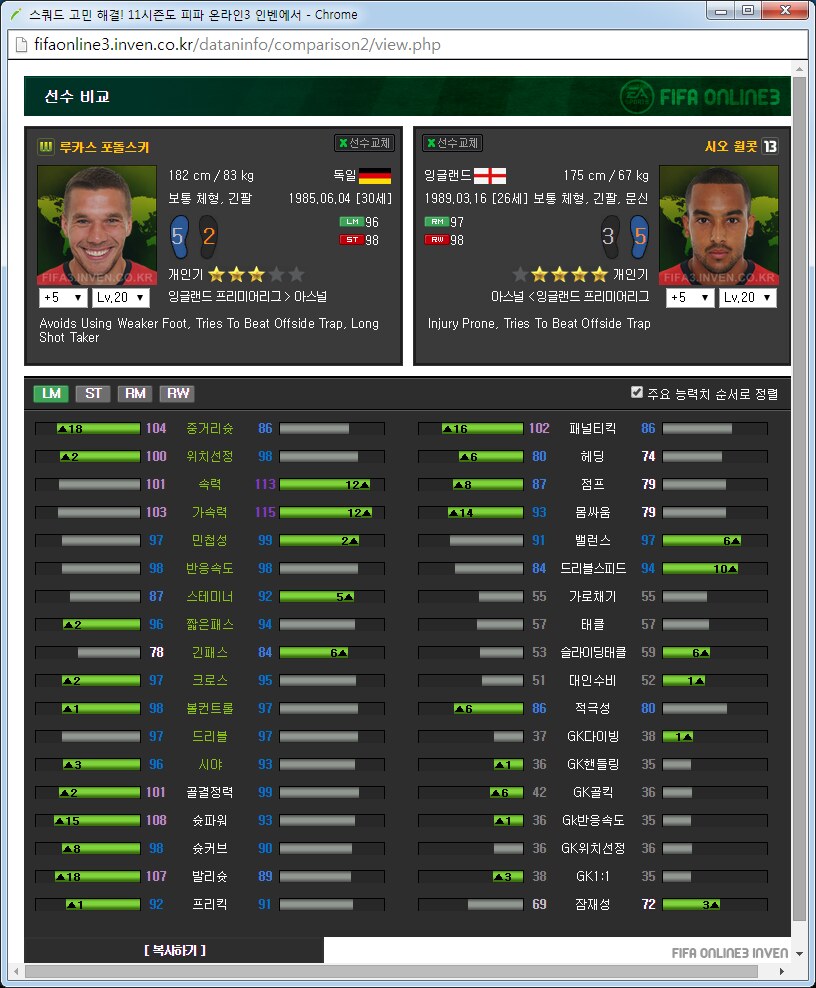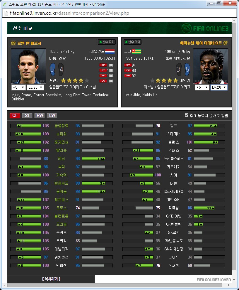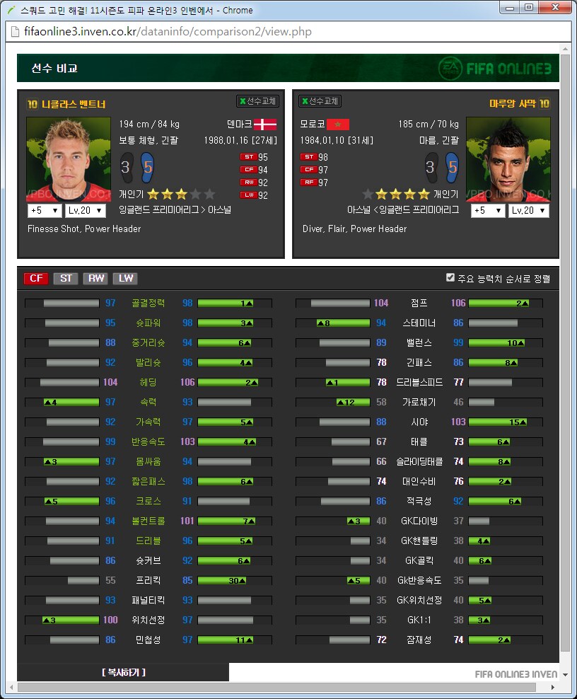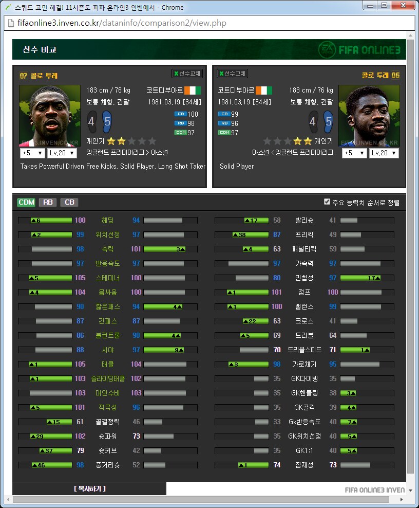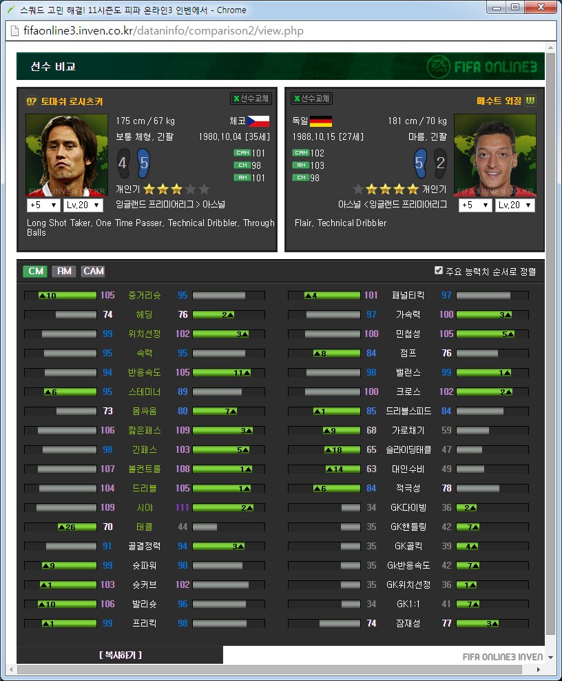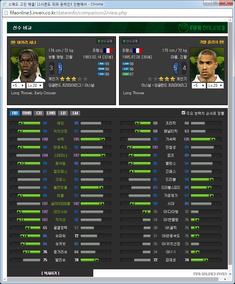 아스날 팀맞추기 가이드약 3달째 아스날을 맞추고 있는 사람입니다. 아스날 맞추면서 알게된 것들을 공유하고자 합니다. ![]() ![]() 써볼 선수도 적당히 써보았지만 제가 실력이 선수 가격이나 스탯분석을 중심으로 하겠습니다. 스탯과 가격은 5강 20레벨, 11월 2일 기준으로 보겠습니다. 아침에 일어나보니 사진올라가네요 다시 올립니다. 0. 팀을 맞출 때 원하는 팀을 맞출 때에 왠만큼 좋아하거나 의미를 두지 않으면 대장팀이나 월드컵카드팀 만나서 멘탈 깨지게 되어있습니다. 정말 좋아하거나 수집에 의미를 두고 하시길 추천드립니다. 일단 팀을 맞출때 전체 가능한 스쿼드를 예상을 해 보고 맞는 전략과 포메이션을 찾은 뒤에 팀을 맞춥시다. 팀컬러가 자신의 게임 스타일과 맞아야 그 팀을 하는 의미가 있습니다. 저 같은 경우에는 짧은 패스를 통한 빌드업에 흥미가 있어서 아스날을 골랐습니다.(바르샤는 비싸서 넘겼습니다.) 팀의 장단점도 잘 파악을 하셔야 합니다. 아스날의 경우에는 쓸만한 공격진과 가성비 좋은 중앙이 있습니다. 또한 각종 히든이 잘 분포되어 있고 플레이 스타일도 히든에 맞추어서 갈 수 있습니다. 하지만 무게감 있는 스쿼드가 힘듭니다. 대장급 카드는 앙리 뿐입니다. 하프라인 아래는 전멸입니다. 좋은 수비형 미드필더부터 윙백 풀백 센터백 골키퍼 아무것도 없습니다. 그리고 그놈의 인저리프론을 앵간하면 다 달고있습니다. 톡하면 다치는 경우가 있어서 빡치는것도 빡치지만 교체요원을 준비해 두어야 합니다. 이번 로스터패치로 꿀선수가 둘이나 없어졌습니다. 에두아르도와 밥티스타는 정말 좋은 공격수였지만 이제는 쓸 수 없습니다. 다시말해 공격진 스쿼드가 좋았지만 이제는 좋지 않습니다. 피네스와 옵뚫히든이 절대적으로 부족합니다. 이는 슛을 쏠 수 있는 구역이 제한되는 상황이 만들어지고 팀자체가 딱딱한 느낌이 들게 됩니다. 피지컬좋은 공격수도 부족합니다. 몸싸움 되는 공격수는 지루뿐이지만 지루는 속도가 눈물납니다. 즐라탄, 드록바 기대하지 맙시다. 이런점을 다 숙지하시고 팀을 맞추어야 합니다. 이제 팀을 맞추는 방법으로 가자면 각 시즌별로 특성이 있습니다. 일단 07과 10시즌은 가격이 엄청나게 쌉니다. 요즘 통합강화팩이 돌면서 전체 시즌카드의 가격이 떨어지고는 있습니다만 여전히 07 10은 스탯에 비해 많이 쌉니다. 08과 11의 경우 물량이 덜풀려서 가격이 굉장히 비싸구요. 싸게 가고싶으면 07 10을 골라서 가면 됩니다. 고강을 원하면 07 10 고강을 가는 것이 쌉니다. 금카도 꽤 물량이 있습니다. 다시말해 같은가격에 좋은 스탯을 원하면 가성비시즌인 07 10 고강을 사시면 타시즌 저강과 가격이 같습니다. 이점에 유의해서 자신의 현재 자금력과 팀 스쿼드를 재보시고 팀을 맞추시면 되겠습니다. 1. 골키퍼 ![]() 이제 아스날에 남은 골키퍼는 슈제츠니 밖에 없습니다. 인벤에 14가 업데이트가 안되었지만 14슈제츠니는 스탯이 올랐습니다. 슈제츠니 시즌 가격 (내가 생각하는)적정가격 wc 1350 1000 14 650 6강 1100 월초라 가격이 많이 올라있습니다. 14는 스탯이 바뀌어서 어떻게 될지 모르겠지만 제가 살땐 저랬습니다. 대안이 없기 때문에 암이 걸리더라도 방법이 없습니다. 슈제츠니 씁시다. 2. 수비수 아스날의 가장 큰 문제점은 수비수 스쿼드가 쓰레.. 좋지 않다는 것입니다. 고강을 해서 쓰는 방법뿐이 없습니다. 2-1 센터백 ![]() 가장 좋아보이는 조합은 월드컵 코시엘니-메르테사커 조합입니다. 5강가격이 만만치 않지만 이 둘 빼고는 전부 암덩어리 뿐입니다. 코시엘니의 경우에는 민첩하고 공중경합도 쓸만한 녀석이고 메르테사커는 스탯에서 보듯이 느린 뚜벅이 탱크입니다. 중앙수비수 2명은 한명은 민첩, 한명은 단단함으로 고르는 경우가 있는데 딱 이 케이스 입니다. 메르테사커의 경우에 너무 느려서 못써먹겠다는 사람이 많은데 수비능력 자체는 믿을수 없을 만큼 좋습니다. 역습상황에서 같이 달리기 시작하면 절대로 따라잡지 못하지만 공 잡자마자 밀어버리거나 커트해버리면 해결됩니다. 쓰면서 이놈 말고 빠른놈이었으면 막았네 하는 경우도 있지만 이놈 아니었으면 못막았네 하는 경우도 많습니다. 돈만 있다면 가장 추천하는 중앙 수비수 스쿼드는 월드컵 메르테사커-코시엘니를 2장씩 구비하는 겁니다. 코시엘니 시즌 가격 (내가 생각하는)적정가격 wc 4600 3500 메르테사커 시즌 가격 (내가 생각하는)적정가격 wc 1700 1600 피파격언중에 수비수에 가장 많은 돈을 써야 팀이 좋아진다라는 이야기가 있습니다. 수비수에 돈 팍팍 씁시다. ![]() 투레는 시즌이 많습니다. 그중에서 가격뽕이 너무 심한 08을 빼고나면 06과 07이 남습니다. 재미있는건 07은 단단한 센터백이고 06은 민첩한 센터백이라는 겁니다. 적당히 원하는 시즌을 골라서 사용하면 되겠습니다. 수미로 기용가능하다는 점이 추가점 요소입니다. 콜로 투레 시즌 가격 (내가 생각하는)적정가격 06 400 400이하 07 450 450이하 08 3900 1000? ![]() 그 다음은 센데로스와 베르마엘렌입니다. 적당한 가격대로 수비를 쓸 수 있습니다. 센데로스는 제가 살 때에는 천만원 했는데 지금은 가격이 많이 떨어졌네