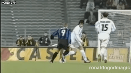 호나우두의 전성기를 끝낸 부상![]() 1999년 11월 21일, 경기 도중 호나우두는 경기장 밖으로 절룩거리며 나갔고, 검사 결과 무릎의 힘줄이 파열되어 수술이 불가피해졌다. 무릎 수술과 재활 후 5개월이 지난 2000년 4월 12일, 호나우두는 코파 이탈리아 결승 1차전에서 복귀했는데, 7분 만에 또다시 무릎 부상이 재발했다. 이때는 심지어 수비와 아무런 접촉도 경합도 없이 혼자서 볼을 몰고 들어가다가 무릎에 힘이 들어가는 순간 큰 비명 소리와 함께 쓰러져 버렸다. 이 부상은 그야말로 치명타로서 호나우두의 전성기 기량 자체를 완전히 끝내 버렸다. 이 두번째 무릎 부상으로 호나우두는 2000-01 시즌 전체를 날려버렸고, 2001-02 시즌도 전반기를 거의 다 결장하게 된다. 이날의 쇼크가 어느 정도였냐면 전세계 뉴스가 호나우두의 이 장면을 보도하면서 이제 축구의 신은 끝났다고 애도하는 특집방송들까지 내보냈을 정도 ![]()