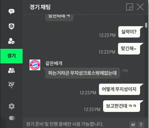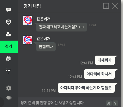 진짜 재밌어서 올림 ㅋㅋㅋㅋㅋㅋㅋㅋㅋ우선 게임 시작하고 4:1부터 아다리 지리네 라는 발언으로 시작. 웃겨서 말좀 하다가 6:3으로 마무리. 그러다 개발라준다는 말로 친선 시작 ![]() 경기 1:2가 되자 비행기 타면서 신나버림. ![]() 그러다 크로스로 또 먹히니 무지성 타령 ![]() 사이사이 패드립까지 ![]() 개발라 준다는 말과는 다르게 승부차기로 승리. ![]() 한판 더하자길래 하는데 다시 아다리 운운 ![]() 여기서부터 레전드 mz발언 시작. 여기부터 레전드 웃겨서 집중이 안됨 ㅋㅋㅋㅋㅋㅋㅋㅋㅋ ![]() ![]() 아무래도 많이 힘들어 보이심. ![]() 처음부터 시작된 만년 월클 드립 계속 이어가는중. ![]() 그렇게 재미있게 경기를 마무리 했다는 이야기 ![]() 그렇게 자기 할말 하다가 퇴장. ![]() ![]() 그래서 그렇게 티어 운운하는분 티어가 어떻게 되느냐 ![]() 매일 피파를 하며 챌린저 찍어야 한다 외치는 분이셨다 참고로 나는 전역하고 복귀해서 만년 월클이긴함 1년도 안한거니 ㅋㅋ 아다리든 아니든 그냥 저렇게 화내는 애들이랑 노는게 재밌다 ![]()