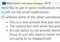 저희는 향후 이러한 것들(처벌후 알림)이 더 눈에 띌 수 있도록 인게임 알림을 추가하고자 하며, 이메일 알림을 시작하는 것을 더이상 기다리게 하고 싶지 않았습니다.
