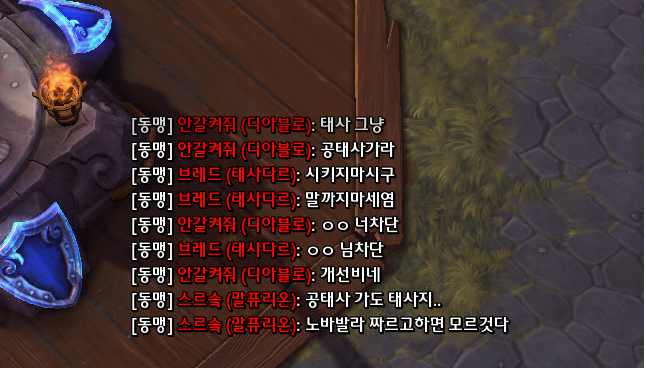 안갈켜줘#3928 팀원 무시 및 끊임없는 욕설제가 소개시켜드릴 아이는 안갈켜줘라는 아이입니다. 지금 설명드릴 곳에선 디아블로 구요 채팅창에서 부터 했지만 어차피 이걸 보면 모든게 설명되기에 스샷 과 리플레이를 첨부하겠습니다 아 초반에는 상황이 좋았던지 아무말 안합니다 정확히는 11분 16분~ 1.초반잠깐 이구여 브레드가 저입니다. 처음 픽선택 채팅창부터 조금 막나가기에 시키지말라구하구 말까지 말라구 했죠 차단할까하다가 욕을 좀더한다면 신고하기위해 차단은 미뤄놨습니다 디아블로로 공성 많이 먹었다 영웅 많이 쳣다 이런말했으면 진심.. 저도 욕을 했을테지만 이얘긴 안하더군요 무슨 악마의 편집 이런말이 나올까하여 리플을 첨부합니다.