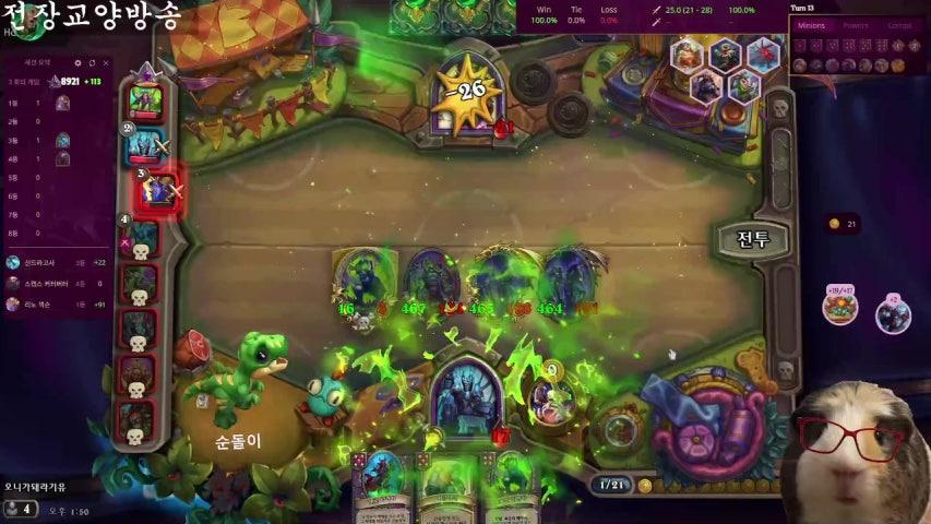 케릭터에게 적군 핸드의 카드 한장당 체력을 회복시키는 스펠은 2 만큼의 체력을 회복시킨다. 이제 데미지를 준다.