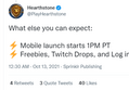 용병단 출시 시간 새벽 2시![]() 3월~10월 사이엔 거의 모든 신규 컨텐츠/확장팩이 새벽 2시에 나온다고 생각하세요 11월~2월 사이엔 새벽 3시에 나옵니다. ![]() 모바일은 새벽 5시로 다소 늦게 나오며 트위치 드롭스와 로그인 보너스도 있습니다. |