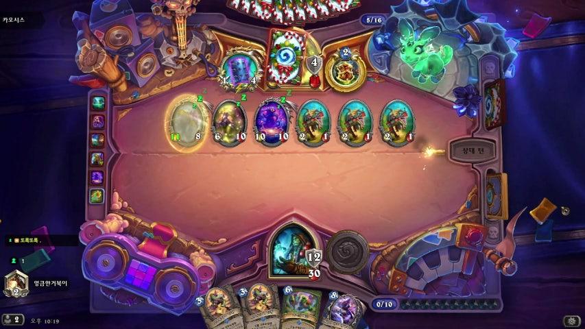 하두 재미없는 덱들만있어서 다시해보니깐 여전히 필드정리 못하고 명치로만 들어가네 데미지 7~8 만들어놔도 하수인 1,2 들어가고 나머지는 거의다 명치...... 진짜 확률값 잘못된게 아닌가 생각만듬