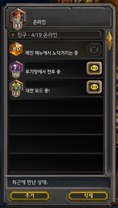 스트리밍 방송을 다시보기로 쭈욱 살펴보니 저를 삭제할 타이밍에 다음 상대가 먼저 대전 신청을 걸어서 친구 삭제를 못한 상황.