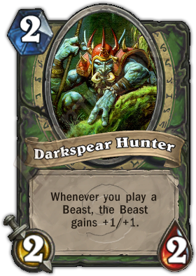 Darkspear Hunter 내가 야수를 낼 때마다, 그 야수에게 +1/+1을 부여합니다.