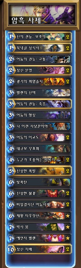 이 덱에서 가장 중요한 건 후반을 바라볼 수 있게 하는 하수인 클리어라고 생각합니다. 그러나 새 확팩이 나오면 버티게 해주는 카드와 광역기가 많이 없어지는데, 대체할 카드 추천 좀 해주세요.