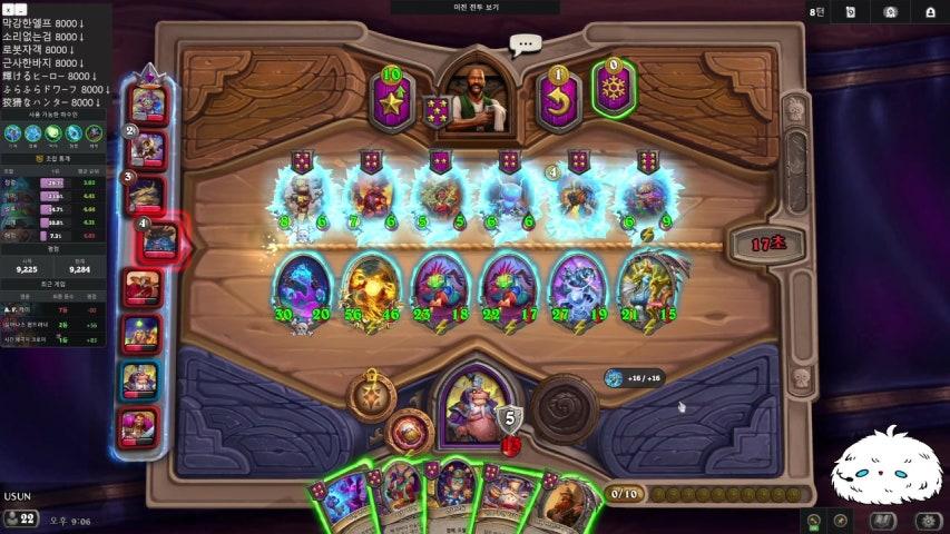 3코에 주문을 쓸 때마다 영능 한번 더 해주는 비어도를 넣는거죠. 퀘스트 깨고 덱을 발견 덱으로 바꾸면 덱이 전부 1코 주문이 되니까 8뎀! 8뎀! 8뎀! 굳이 이런 연계가 아니라도 엘리스 스타시커처럼 쓸 수도 있을거 같아요. 저코 도발로 버티고 퀘스트와 발견으로 뒷심을 챙기던가 하는 식으로요