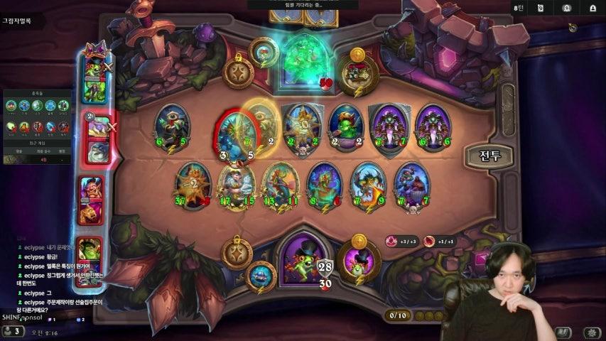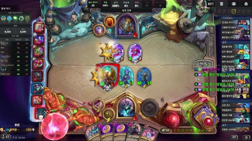 영원히 안끝나는 판 하고오는 길입니다!!ㅋㅋㅋㅋ 상대 전사가 탈진덱이라고 '망자의 손패'라는 카드를 2장쓰는 변태덱을 하더라구요 망자의 손패가 내 손에있는 카드들을 덱에 섞어넣는건데 이 카드를 두장 가진상태에서 한장을 쓰면 다른 망자의 손패가 덱으로 들어가서 영원히 탈진이 안오는 그런 탈진덱인데요