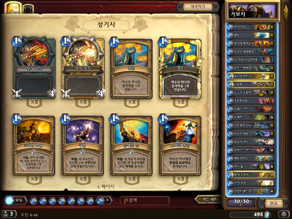 고심해서 만든 성기사 덱입니다. 평가 부탁드립니다^^성기사 덱 잘 짜시는 분들 많으셔서 많이 부족하긴합니다만 한번 살펴보시고 맘에 드시는지 아닌지 평가 부탁드려요 (긴장...)부족한 드로우를 채우면서도 힘싸움에 밀리지 않기 위해 안간힘을 쓴 덱입니다. ![]()