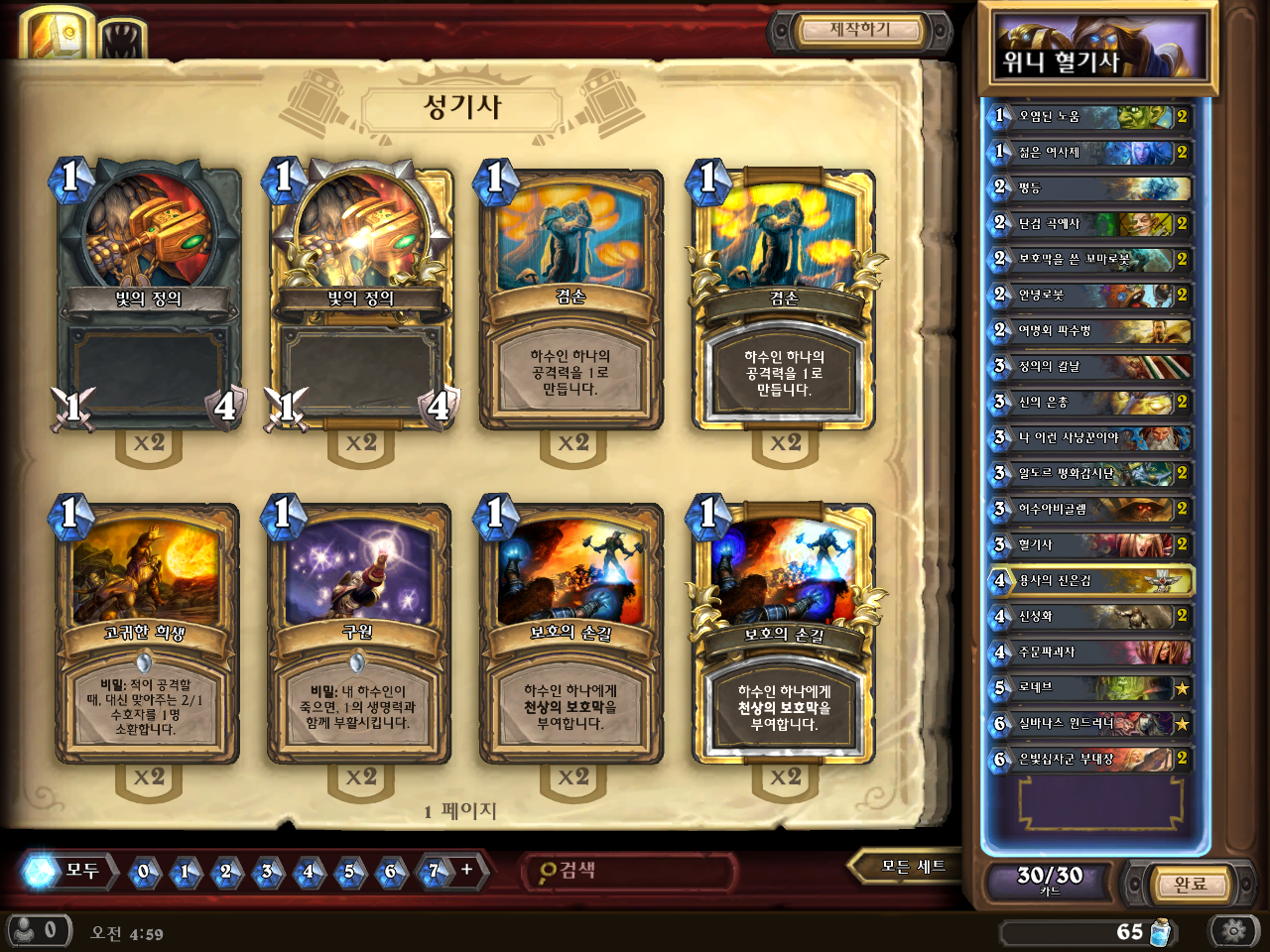 조언좀 부탁드립니다!!얼마전에 카드목록 뒤적거리다가 안녕로봇 짜증나서 혈기사를 넣어볼까 고민하는 다른분 댓글보고나서 퀘스트 깨서 나온 돈으로 깐 카드팩에서 혈기사도 떴겠다 혈기사덱을 짜봤는데 맨날 17~18언저리에서 놀던게 조금씩 올라가더니 결국 14~15에서 막혔네요. ![]() 일단 천보 + 혈기사로 컨셉을 잡고 덱을 짰지만 실제 운영은 혈기사에 올인한다기보다는 1. 1코 라인 + 단검 곡예사 2. 천보 + 혈기사 3. 5코, 6코의 미드라인 이런식으로 나눠서 하고 있습니다. 혈기사는 가능하면 6/6을 목표로 잡지만, 상황봐서 3/3바닐라, 혹은 9/9 등 유동적으로 버프조절을 해서 사용중입니다. 9/9 이상의 경우, 상대방의 천보까지 흡수하는경우 아니면 거의 안나가구요, 1코에 다른 좋은 하수인들도 많은데 왜 젊은 여사제냐 하면 저녀석이 1코짜리중에서는 어그로가 상당하더군요. 선공에 저녀석 꺼내면 후공은 그냥 들이 부어서라도 없애려고 하는 느낌? 안녕이가 없을때는 단검이의 어그로를 분산시켜주는 역할도 합니다. 거기다 가끔 젊동젊이면 2턴에 2/2하수인이 둘......ㅋ 2코의 여명회 파수병은 겜 돌리다가 법냥 슈팅덱이 많이보이길래 넣었던거고 전사나 냥꾼, 도적이 많이보이면 수액괴물로 돌리고 위니가 많이보이면 광기로 바꾸고 뭐 이런식으로 여유있게 돌려쓰려고 사실상 남겨둔 자리입니다. 모자란 실력에 굳이 이렇게 주저리주저리 설명을 늘어놓는건 혹여나 다른분들이 조언하시는데 더 도움이 되지는 않을까 해서입니다. 조언좀 부탁드려요!! P.s. 아 그리고 낙스 언락 포함해서 총 5만원 질렀는데 흉작이라 가벼운덱 말고는 짤수가 없어요 ㅠㅠ 전설은 낙스 제외하면 저기 보이는 실바, 들창코, 알렉스트라자 세개있는데 들창코랑 알렉을 갈아버려야되나 고민중