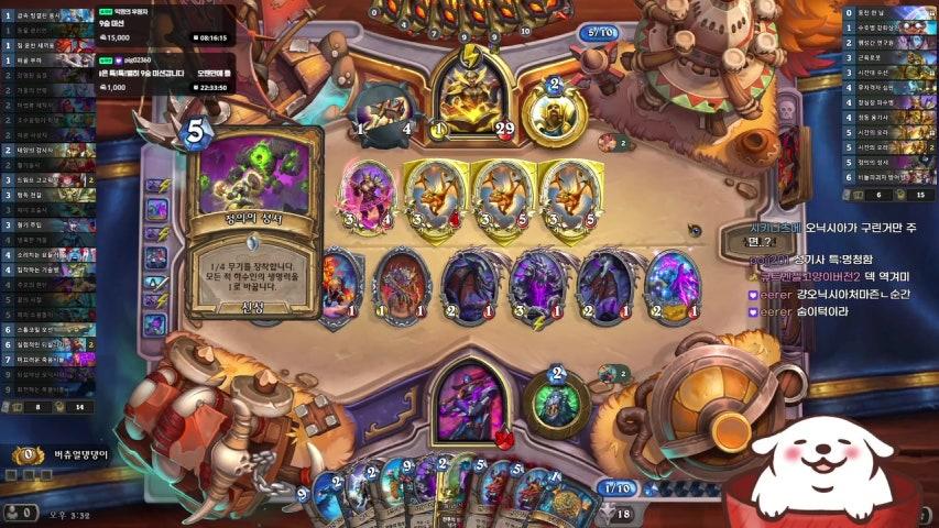 요즘 굴리고 있는덱하수인 (흑마법사) [1] 공허방랑자 x 2 [1] 멀록 파도술사 x 2 [1] 성난비늘 수련사 x 2 [1] 피의 임프 x 2 [1] 화염 임프 x 2 [2] 단검 곡예사 x 2 [2] 멀록 바다사냥꾼 x 2 [2] 요정용 x 2 [2] 푸른아가미 전사 x 2 [2] 풋내기 기술자 x 2 [3] 멀록 전투대장 x 2 [3] 시린빛 예언자 x 2 [4] 늙은 거먹눈 멀록 x 1 [9] 군주 자락서스 x 1 하수인 (공통) [1] 공허방랑자 x 2 [1] 멀록 파도술사 x 2 [1] 성난비늘 수련사 x 2 [1] 피의 임프 x 2 [1] 화염 임프 x 2 [2] 단검 곡예사 x 2 [2] 멀록 바다사냥꾼 x 2 [2] 요정용 x 2 [2] 푸른아가미 전사 x 2 [2] 풋내기 기술자 x 2 [3] 멀록 전투대장 x 2 [3] 시린빛 예언자 x 2 [4] 늙은 거먹눈 멀록 x 1 [9] 군주 자락서스 x 1 주문 [0] 영혼의 불꽃 x 2 [1] 압도적인 힘 x 2 법사 5전 2승 3패 사제 7전 5승 2패 전사 1전 0승 1패 성기사 4전 4승 0패 사냥꾼 6전 6승 0패 흑마법사 4전 2승 2패 드루이드 4전 3승 1패 도적 7전 5승 2패 주술사 2전 1승 1패 오늘 전적 40전 28승 12패 마3임 스피드하게 한판한판이 끝남 잘풀리면 4~6턴이면 게임 끝나고 안풀리면 10턴정도에 끝남 10턴 정도까지 필드상대가 지배하고 있으면 진거임