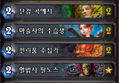 2 Sorcerer's Apprentice 2 Mirror Image 2 Wolfrider 2 Frostbolt 2 Ice Lance 2 Mana Wyrm 2 Water Elemental 2 Azure Drake 1 Elven Archer 2 Loot Hoarder 2 Knife Juggler 2 Arcane Intellect 2 Leper Gnome 2 Fireball 1 Bloodmage Thalnos 2 Arcane Missiles 저는 엘프궁수 빼고 혈기사 넣어서 이렇게 씀 ![]() 후턴 1,2 턴에 마나지룡, 환영복제, 갓검곡예사 주루룩 내는데 예전에 흑마가 1,2턴에 임프 내는거 보다 더 혐오..