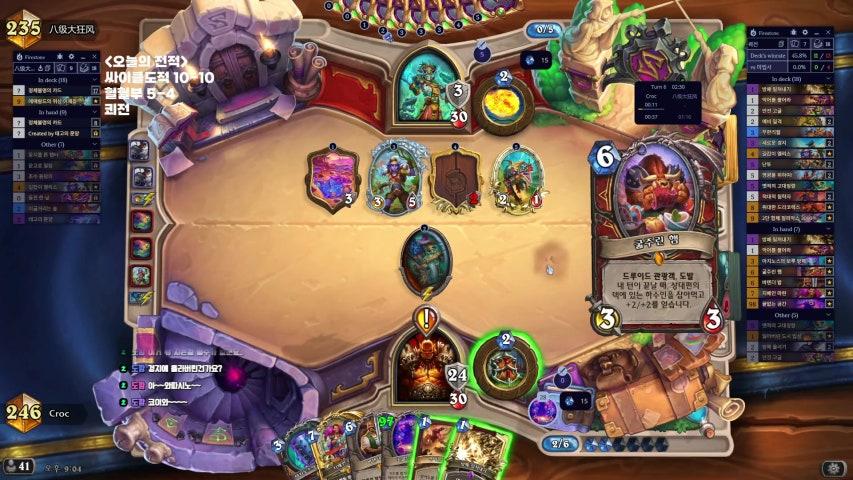 떡대 컨셉은 현재 손해를 보고 다음에 더 강한 플레이를 하는건데 핸드에 있는 카드만 버프받는다는 약점도 있고, 단순 스탯 버프라는 단점도 있다. 스탯 조금 더 받아봤자 카자쿠스나 비취 사기치는거 못 따라간다. 기사는 핸드 전체 1/1부여 컨셉이라 저코 하수인들 다수에 버프를 주는게 유리한데 저코 위주의 덱은 핸드가 금방 마르기 마련이라 애매하고, 그렇다고 컨트롤 식으로 가자니 주문도 많아지고 버프가 큰 의미를 갖기가 힘들다. 라그가 8/8이냐 10/10이냐가 얼마나 차이가 날까. 냥꾼은 무작위 야수에 버프 부여 컨셉인데 이 경우는 어떤 대상에 들어갈지 모른다는게 치명적이다. 분명 쥐 떼나 습격용 코도는 버프발렸을 때 그만한 포텐이 있지만 대상이 무작위라 엉뚱한 곳에 들어가는 경우가 많다. 사바나가 8/7이라고 맞을 사술을 안맞진 못한다. 길냥이 3/3만들려고 떡대 덱 짠 것도 아니고... 전사는 무작위 도발에 버프 부여 컨셉인데 도발이라 어디에 발려도 손해는 아니지만 도발 하수인들 자체가 수동적이라는 단점이 있다. 지금 해적이 너무 쎄기도 하고... 개인적으로 떡대덱들이 살아나려면 단순 스탯뿐 아니라 부가효과를 가지는 카드들이 많아져야 할 것 같다. 냥꾼의 쥐 떼나 습격용 코도가 버프없이 써도 큰 손해가 아니란 점에서 괜찮은거 같고 전사의 뒷골목 방제자도 마찬가지. 기사의 치안대장은 버프없으면 무쓸모라 안좋은 케이스인거 같다. 떡대 컨셉이 초반에 버프주는 시점에 약하다는 걸 보완할 수 있게 버프 받으면 도발이 생긴다던가 하는 카드가 나와여할거 같다. 근데 인간적으로 경관 샐리는 전함으로 해줘도 되는거 아닌가ㅡㅡ