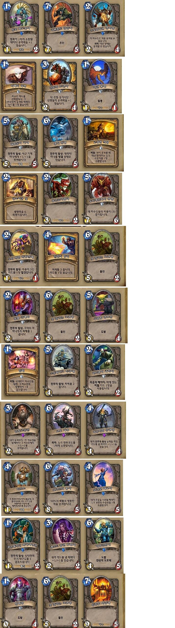 투기장 픽 기보 의견좀 부탁드립니다어떤의견이던지 감사합니다 ![]() 1. 2번아니면 3번이었지만 첫픽이라서 은신으로 후반 명치가 가능한 암살자 선택 2. 1번아니면 2번이었지만 무조건 한장이상 드로우가능한 지축 선택 3. 냉기정령 선택 4. 용병혹은 랩터 둘다좋지만 픽 초반이므로 용병선택 5. 딱정벌레 선택. 1혹은 2고민함 6. 곡예사 선택 7. 고를게없어서 스톰파이크 선택 8. 고를게없어서 코도기수 선택 9. 보랏빛여교사 선택 10. 태양길잡이 선택 11. 고를게없어서 로켓병선택 ![]() 12. 3코가 하나도없어서 거미전차 선택 13. 구덩이투사 선택 14. 고를게없어서 A3선택 15. 양폭탄혹은 풋내기종자중에 그래도 종자를 2/2로 써먹을수있을거란 생각으로 선택 16. 아르거스 선택. 1번과 3번중 고민 17. 전투마선택. 차라리 타조가 나았을거라고 생각중 18. 용 선택. 왕두꺼비가 나았을거라 생각중 19. 춤추는 검 선택. 패널티는있지만 다른 두개보단 나아서 선택 20. 택배맨 선택 21. 늪수액선택. ![]() 22. 앙갚음 선택 23. 멀록기사 선택. 4코에 곧바로 낼수있는게 2장밖에 없었던걸로 보아 벌목기가 나았을거라 생각중 24. 성기사단 선택. 2 3 코가 많이없어서 선택했으나 크발디르도 괜찮았을거라 생각중 25. 고를게없어서 멀록기사 선택 26. 우두머리 선택 27. 울다만 선택 28. 요르문가르 선택 29. 어쩔수없이 뱃사람 선택 30. 신의 은총 선택 다시 되돌아보면서 아쉬웠던 카드가 몇장있기는하나 아직 너무 부족한것같습니다. 어떤 의견이든 감사히 듣겠습니다 감사합니다!