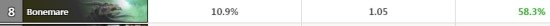 이 카드는 신기하게 생각하는 카드 중 하나이다. 2코 2/3 카드를 좋아하기는 하는데.. 솔직히 이 카드로 멀록 버프 주는 게임 별로 없었다. 그냥 2코 2/3이라 생각하는데... 승률이 너무 높다. 성기사 뿐만 아니라 전 직업에서 1페이지에 보이는 일반 카드중 하나이다. 2코 2/3이 그정도로 강력한가? 근데 민물악어는 별로 안높던데. 버프 줄 확률이 얼마나 된다고? 동물원로봇도 고려하기는 해야하지. 그게 그렇게 큰 의미가 있는지는 모르겠다. 소집의 영향을 받았겠지. 다른 직업에서도 높은건 모르겠고. 2코 2/3은 강력하다 가 답이 아닐까.