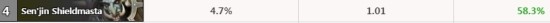 15등 '은빛 십자군 종자' 난 이카드 정말 좋아하지. '등급전에서 불의 정령, 누누 따위는 안 써도 종자는 잘 쓴다' 라는 말로 무조건 뽑고는 했어. 성기사 1코에 이 카드보다 대놓고 좋은 카드가 있어서 살짝 기분이 나빠질러 하는데, 그래도 좋은 카드야. 15등까지 대부분이 저코스트 카드인게 눈에 띄는데, '템포 성기사' 의 강력함을 보여준다고 볼 수 있겠지. 심지어 나머지 코스트도 센진 말고는 대놓고 어그로 템포 덱 하고 맞는 카드들밖에 없잖아. 전체 카드 승률 1등은 심지어 젠킨스. 그다음은 상어 겐조가 있지. 전설카드들이야 표본이 적어서 워낙 순위가 들락날락 하기야 한다만. 15개씩 끊어서 올려보겠습니다.