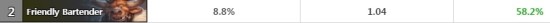 2등은 아마니 광전사의 차지. 2코 2/3 스탯의 강력함과 가끔씩 캐리하는 효과. 이 카드도 기본적인 카드인데 일반 카드 중 2등을 차지했다. 과연 바실리스크,잿멍울 괴물,아마니 광전사가 나왔을 때 아마니 광전사를 픽 하는 것이 답인가? 아마니도 성기사와 궁합이 나쁘지는 않다. 성기사의 버프류와 어느정도 어울리니까.. 그 뿐이기는 하지만. 또 Call to Arms. 한글명 소집인가? 그 카드와 궁합이 잘 맞는 카드이기도 하고. 3등 거만한 연기자가 3등을 차지했다. 성기사는 아무래도 어그로/템포 계열이 압도하나 보다. 전체 카드 중 승률 1등 카드도 지금은 리로이 젠킨스던데. 표본이 적어서 자주 바뀌지만. 딱히 더 할말은 없고 이 카드도 소집과 궁합이 좋은 카드다. 그것도 승률 형성에 한 몫 했겠지. 4등 개인적으로는 성기사 카드 중 가장 좋다고 생각하는데. 다른 카드들은 4.6%~4.7%..연기자는 픽률이 낮지는 않지만. 위의 카드들은 픽률이 좀 낮지. 21.3% 픽률과 58.8% 승률은 대단한 수치이다. 사실상 얘가 1등이라고 생각한다. 가장 좋은 1코스트. 더 설명이 필요할까? 5등