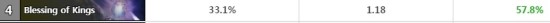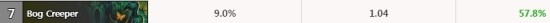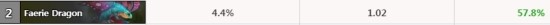국민 2코스트 카드. 당황스럽게 민물악어보다 승률이 낮게 나왔어. 그러나 앞서 이야기 했듯이 이 구간은 촘촘해서 큰 차이 안나. 이 카드 픽률이 20%로 높기 때문에 민물악어나 랩터보다 낮다고 보면 좋겠지. 랩터에 비하면 유의미하게 낮기는 해. 그러나 픽률을 고려헀을때, 랩터같은 카드는 작정하고 2코스트를 뽑는 경우에 보통 뽑고. 즉 어그로나 템포덱에서 뽑는다는 거겠지. 이 카드는 그렇지 않고 미드레인지 컨트롤 할거없이 다 뽑겠지? 그리고 성기사 대세가 지금은 어그로 템포라서 이 카드가 승률에서 밀린거라고 생각해. 당연히 민물악어나 랩터보다 좋은 카드야.