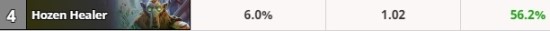 음산한 강령술사라던지, 멀록 바다사냥꾼 같은 토큰류 카드를 선호하기는 하는데 얘는 좀... 처음에는 음산한 강령술사도 이 카드의 기억이 남아있어서 약한카드라고 생각했었는데.. 1코 2/1 카드와 길 잃은 신병들 카드의 승률 차이를 비교해보면 2/1 소환하고 1/1 두개소환하고의 확연한 성능 차이를 알 수 있겠지. 좋은 카드는 절대 아니야. 108등 4422 로 유명한 그 카드지. 이 카드도 예전에는 인기 많았었던 것으로 기억 하는데.. 요즘은 워낙 좋은 카드들이 많이 등장해서 위상이 한없이 추락했지. 그래도 여전히 5코가 비었고 채우고 싶다면 이 카드로 타협 할 수 있다고 생각해. 109등 얘는 누가 봐도 안좋은 카드 아닌가? 새로운 확장팩 카드 버프 때문인지 픽률이 12.3%나 기록하고 있네. 사제같은 직업에서는 일반카드 중 탑5안에도 들어갈 정도로 좋은 카드로 변신하는데, 성기사는 용 시너지 안키우니까 자리가 없지. 용사냥꾼도 무섭고.. 진짜 집을게 없거나 용 시너지를 반드시 얻어야 겠다 이거 아니면 안 집는것을 추천해. 110등 우선 놀라운것은 픽률.. 측방강타만 보더라도 이 카드 못써먹는 카드라는 생각이 들 법도 한데.. 사람들이 드로우를 참 좋아하기는 해. 드로우도 필요하기는 하지만, 템포나 어그로 덱에서 드로우의 가치는 그렇게 높지 않거든. 일단 첫번째 지상목표는 필드 잡는게 첫번째고, 두번째는 명치치는거고, 드로우는 후순위지. 특히 템포덱이나 어그로덱이랍시고 만든 덱이 4코에 3딜이나 날리고 있으면 그 게임은 내 템포를 먹어 잡숩쇼~ 하는거와 똑같다고. 아무리 드로우가 그리워도 이 카드는 별로라고 생각해. 111등 전체 2힐 카드도 나왔는데 뭐하러 단일 3힐 카드를 쓸까... 진짜 한참 예전에는 이 카드도 인기 많았던 3코였지. 그러나 지금같은 3코스트 대폭풍의 시대에서는 집을 카드는 아니지. 112등 선견자도 저지경인데 이 카드에 무슨 기대를 건다는 말인가... 113등 예전에는 상당히 즐겨 잡았던 카드로 기억하는데, 여러 사기카드들에 밀려서 이 지경이 되어버렸네.. 그러나 걱정하지 말아도 되는게 성기사 6코카드는 가돋탈 말고는 제대로 된 카드가 없으니 안심해. 어차피 직업 6코가 거지라서 이런 카드도 자리가 있으니까. 돌주먹오우거와 택1한다고 생각하면 보통 템포쪽에서는 냉기 정령을 조금 더 선호하지. 취향껏 고르면 될거야. 아니면 6코를 아예 비워도 상관 없다고 생각해. 114등 전체적으로 발류쪽에서 즐겨 뽑는 카드들의 점수가 낮은거 같지? 성기사 이외의 직업이라면 그래도 쓸만한 카드인데, 성기사가 쓰기에는 별로 필요가 없지. 이런류의 카드들은 고수사도 그렇고 어둠속의 빛도 그렇고 승률이 굉장히 낮게 나오는데, 그나마 천망과 노움 발명가는 선방한거야. 미드레인지로 사제를 만나도 이길 수 있다고 자신한다면 이 카드를 선택하는 것도 나쁘지는 않다고 생각해. 115등 23/11. 솔직히 3코 카드인 이상 어쩔 수 없지? 116등 잘 안쓰는 카드들로 가니까 진짜 이름을 하나도 모르겠다... 고대의 꽃정령과 비슷하게 성기사로는 별 필요도 없고.. 걍 카드 자체가 그렇게 강하지 않지. 117등 4코 2/7 까지는 눈 감고 봐줬는데 4코 2/6은 좀.... 힐을 한다고는 하지만 성기사는 직업카드에 이 카드라 같이 쓸 만한 카드가 없는 편이야. 중립 카드와 같이 써야 한다고 보는데.. 솔직히 보글보글이나 광역힐 버섯같은거 나두고 2/6 쓰기는 좀 그렇지. 118등 정령시너지가 있다면 굉장한 정령시너지를 제공해주는 카드지만, 성기사는 정령시너지와 인연이 아예 없어서 보통은 안쓰는 카드라고 봐야겠지. 어쩌다 보니 정령시너지가 생긴 성기사 덱이라면 집을 수도 있을거야. 119등 이 카드보다도 승률이 나쁜 카드가 존재한다는 말인가? 다행히 이 카드 아래로는 독성류 카드하고 고수사하고 어둠속의 빛 말고는 네임드 카드는 없어. 이제는 완연한 쓰레기 카드들의 시대라고 봐도 되겠지? 120등 뒷심을 원한다고 하더라도 이 카드는 그다지.. 이 카드로 뒷심 챙기느니 억지로라도 템포카드를 선택하는 것을 추천해. 틀린 카드이름 제보 받습니다;