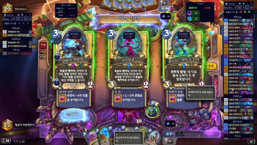 0무기 전사 12-2![]() ![]() ![]() 0간아그 0검놀이꾼 0척후병의 도끼라서 그다지 기대하지 않았던 덱인데 12승까지 해서 소개해봅니다 반강제로 범퍼카, 체력 단련을 한장씩 집고나서 5턴 체력 단련 후 필드 압도하는 컨셉으로 덱을 짜봤습니다 범퍼카 죽메로 나오는 1코 1/1을 5턴 이후 체력단련으로 3/3으로 만드니 필드 관리가 수월했습니다 어떤 판은 5/5까지 키운적도 있네요 한번 키워놓으면 운동부 주장과의 시너지도 흉악했습니다 체력단련이 이 덱의 키워드였는데 재미난 카드인게 제 기억으로는 이 카드의 하스아레나 점수는 그리 높지 못한데 실제 승률은 높은 카드 입니다 덱 컨셉에 따라서 달라지겠지만 10턴까지 기다렸다 쓰는것보다는 5턴에 최대한 빨리 쓰는게 효율적으로 보이네요 사용하는 시점에 핸드가 많을수록 유리하기 때문에 닻꾼 2장이 필드 장악+드로우에 많이 도움이 되었습니다 0무기 전사라도 좌절하지 않고 컨셉만 잘 짜면 12승 가능하다는걸 알게해준 덱입니다