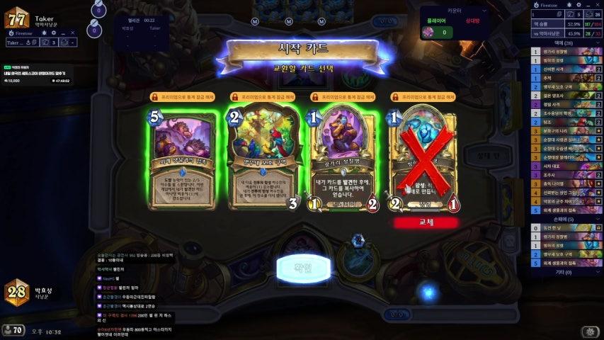 제 5회 솔래이유의 당당당 연승전 (당신이랑 당신, 그리고 당신도 지원하세요!)![]() 와! 5회 !와! 어둠의 반격 마지막을 불태울 당당당 입니다. 아시아 계정이 있는 분이면 누구나 참여할수 있습니다. 배틀태그만 적어주시면 끝~!!! 등급제한 없고, 대회도중에 당일참가 가능한것도 똑같습니다. 단판 연승전, 덱은 비공개, 판마다 바꿔도, 안바꿔도 됩니다,(18개 들고와도 됨) . 27일 https://battle.dog/c/e3oxaw2dz 28일 https://battle.dog/c/qrq3qz7mr 대회 진행은 카카오톡 오픈채팅으로 진행됩니다. 링크: https://open.kakao.com/o/gIjjmExb 카카오톡 오픈채팅에 참여하시면 본인 순서 3번째 전에 도우미가 카톡으로 안내해드립니다. 신청하셨을 경우 배틀넷 귓속말, 카카오톡 오픈채팅 등 연락수단을 꼭 확보해주세요. 연락이 되지 않아 순서가 밀리거나 순서에서 제외되었을 때에는 책임지지 않습니다. 혹시 참가를 알리고 싶지 않은 스트리머나 선수분들께서는 매니저분들이 트위치 귓말로 따로 알려드릴 예정입니다. 요번에 크게 바뀐전 3가지를 설명드리겠습니다. 1. 이번에는 토,일요일 같은 룰의 별개의 대회로 진행할 예정입니다. 즉, 이틀 다 참가하는것도 가능합니다. 상품도 양쪽 다 우승하면 한명이 다 가져갈수 있습니다. 2. 마스터즈 예선, 또는 그 이외의 대회에 참가하시는 분들을 위해 추가한 룰입니다. 당당당과 다른 대회 일정이 겹치시는분은, 대회중계진과의 협의를 통해 순서를 바꿀 수 있습니다. 일단 배틀독 참가신청을 해두시면 다른 대회가 겹치지 않는 시간에 당당당에도 참가할 수 있도록 하려고 합니다. 단, 연승도중에 다른 대회의 경기가 잡혀 중간에 당당당쪽을 포기하산다면 재참가는 불가능합니다. 3. 자일을 벤 목록에 추가했습니다. 이유는 위즈뱅과 같습니다. 벤카드는 총 네장입니다. 더 많은 분들이 대회에 참여하실수 있도록 경기 시간을 줄이기 위함입니다. 자세한 룰은 배틀독 접수처를 확인해 주세요.