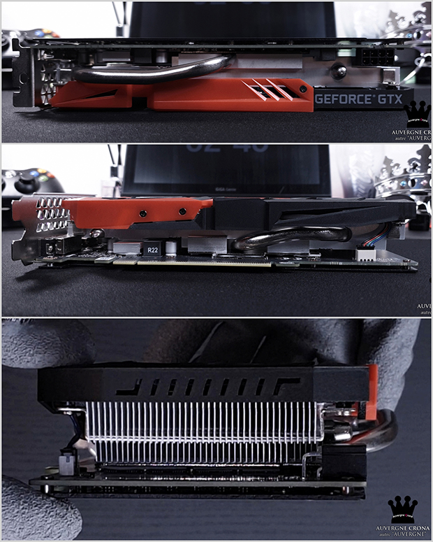 ▲ GTX1660S 토마호크의 방열판은 제법 묵직합니다. GPU와 메모리에는 일체형 방열판이, 전원부에는 개별 방열판이 사용되었는데요. 히트 파이프는 GPU에 직접 닿는 설계로 니켈 도금 처리되어 있고, 그로 인해 알루미늄 방열판과 합이 좋습니다. 전원부의 경우, GPU에 4페이즈, 메모리에 2페이즈씩 할당된 4+2 페이즈로 구성되었습니다.