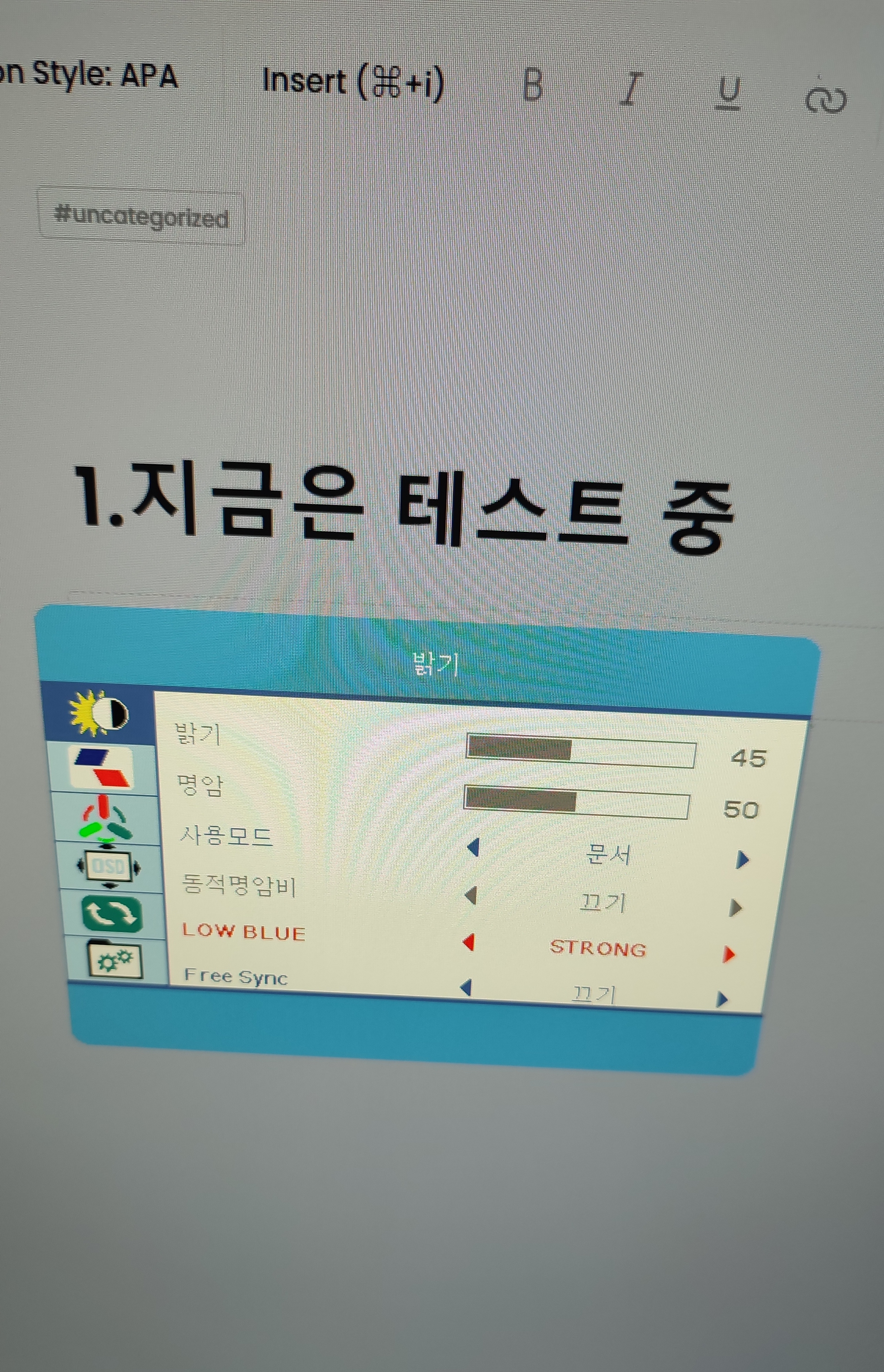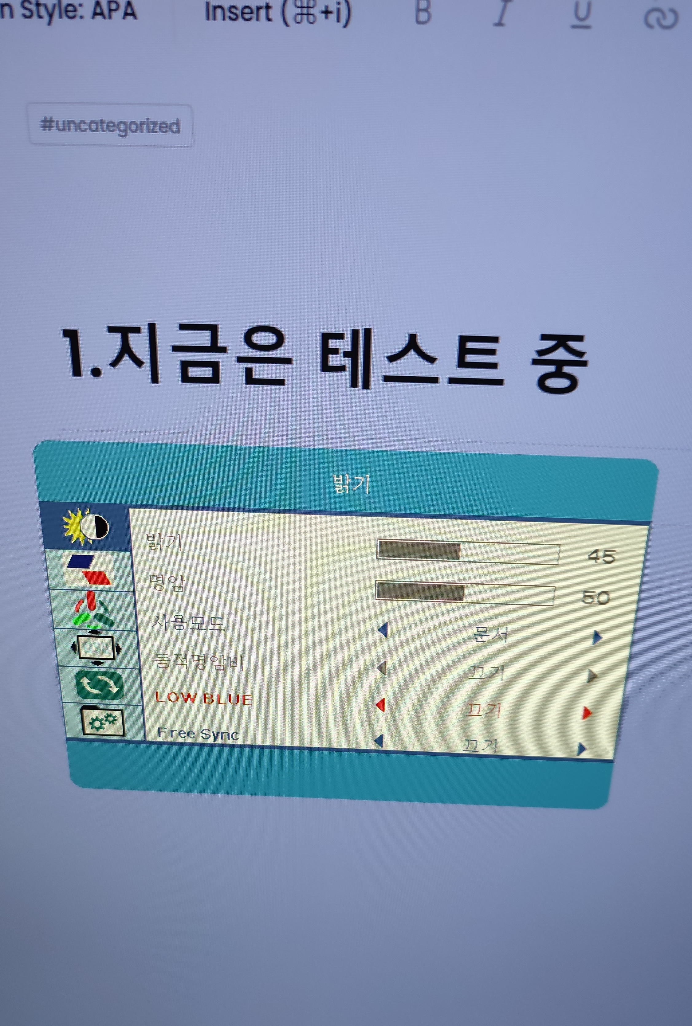 밝기 250칸델라에 sRGB 95% 색재현율이 잘 적용되고 있는 듯 했습니다.