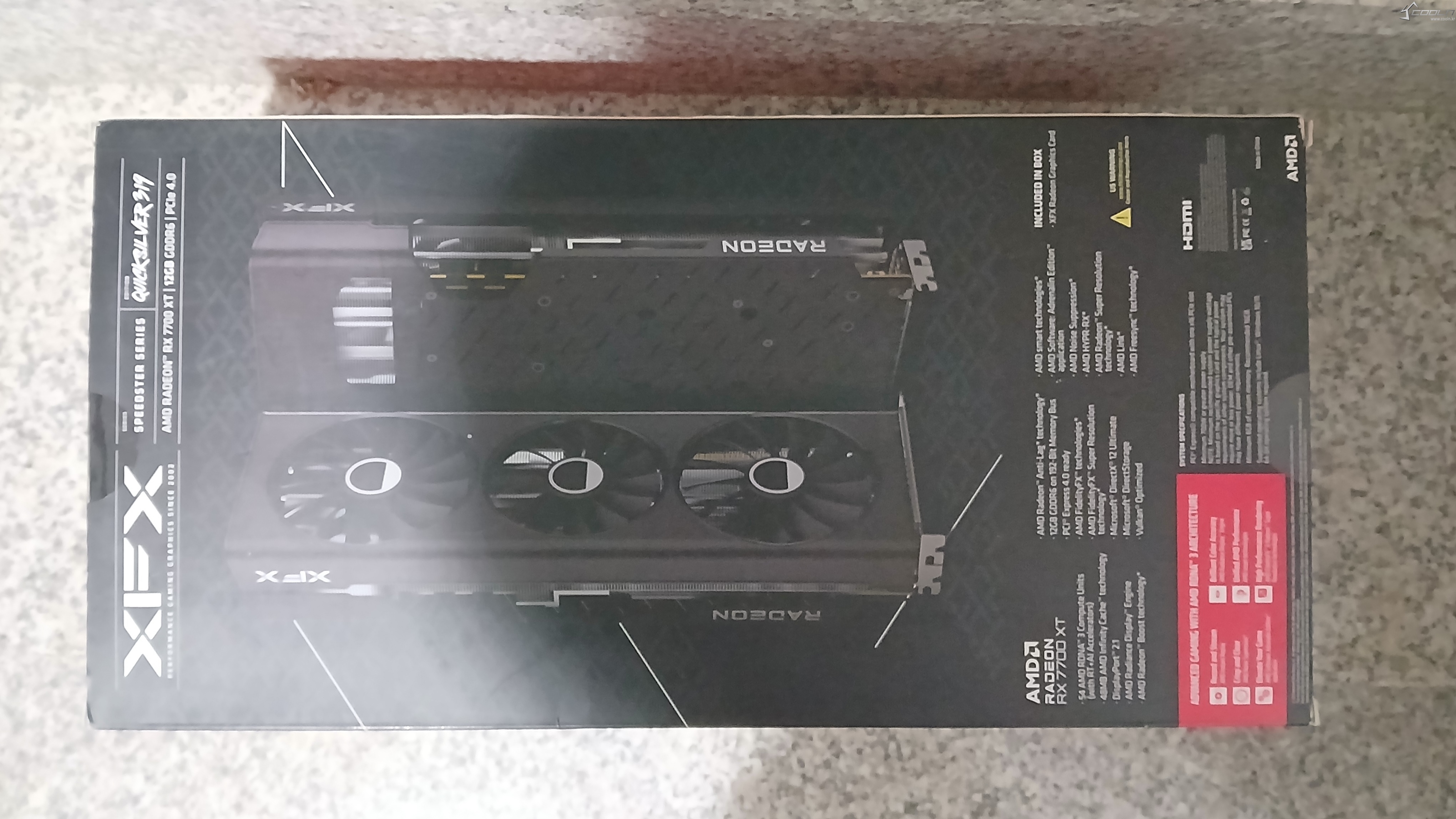 2. XFX 라데온 RX 7700 XT QICK 319 BLACK D6 12GB (쿨엔조이 & STCOM 제공) 제품 박스
