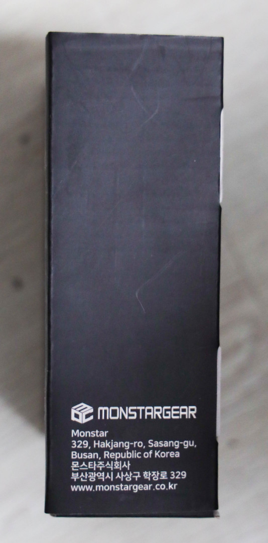 전면과 옆면 등은 깔끔하게 검은색 바탕에 제품 사진과 간단한 몬스타기어 정보가 적혀 있습니다.