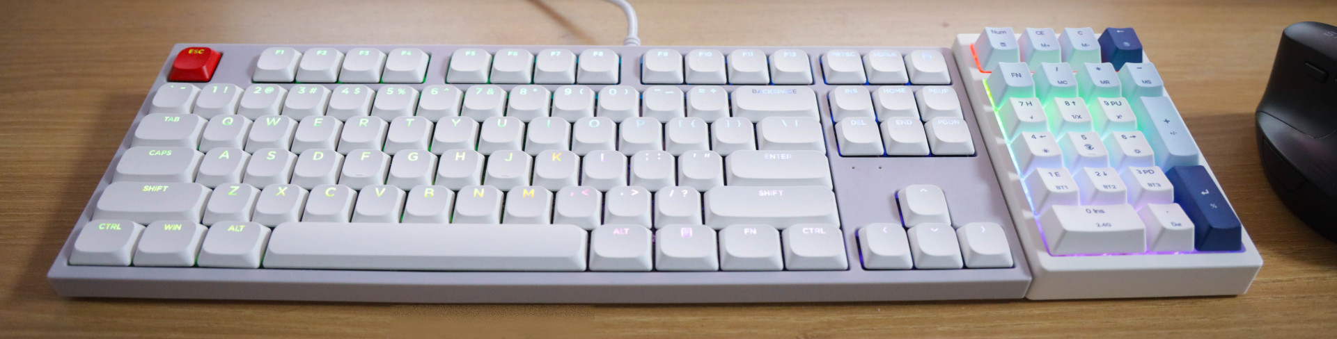몇년전부터 키보드 제품은 텐키리스 제품이 많이 보이는데 공간활용성도 좋고 자주 사용하지 않는 넘버패드부분을 제거해서 특히 게임을 할때 마우스와 키보드 사이에 간격을 좁혀서 편하게 게임을 할수 있는 이점도 있습니다.