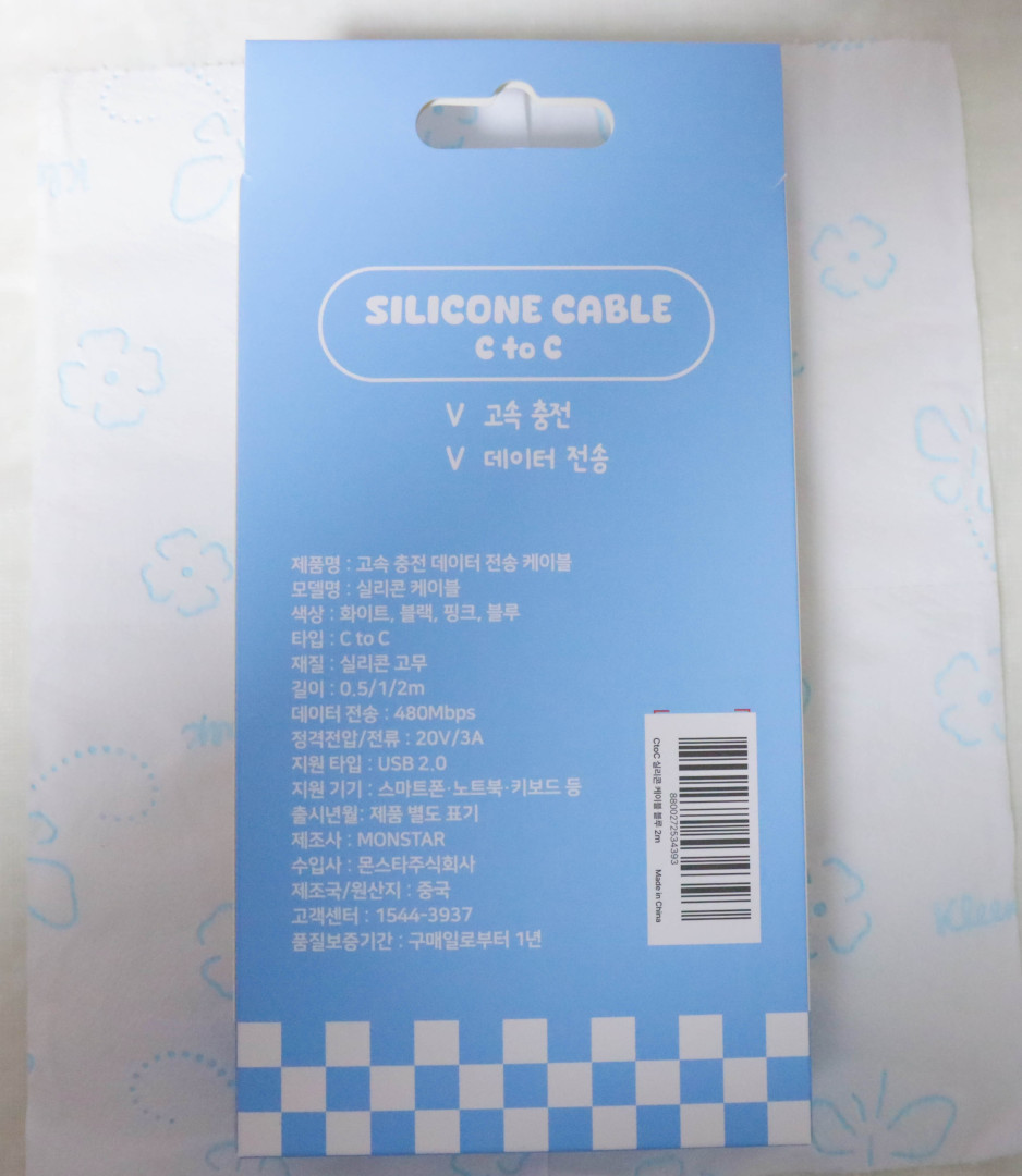'몬스타기어 초고속 실리콘 케이블' 은 C to C 는 최대 60W, A to C 는 최대 18W 를 지원합니다.