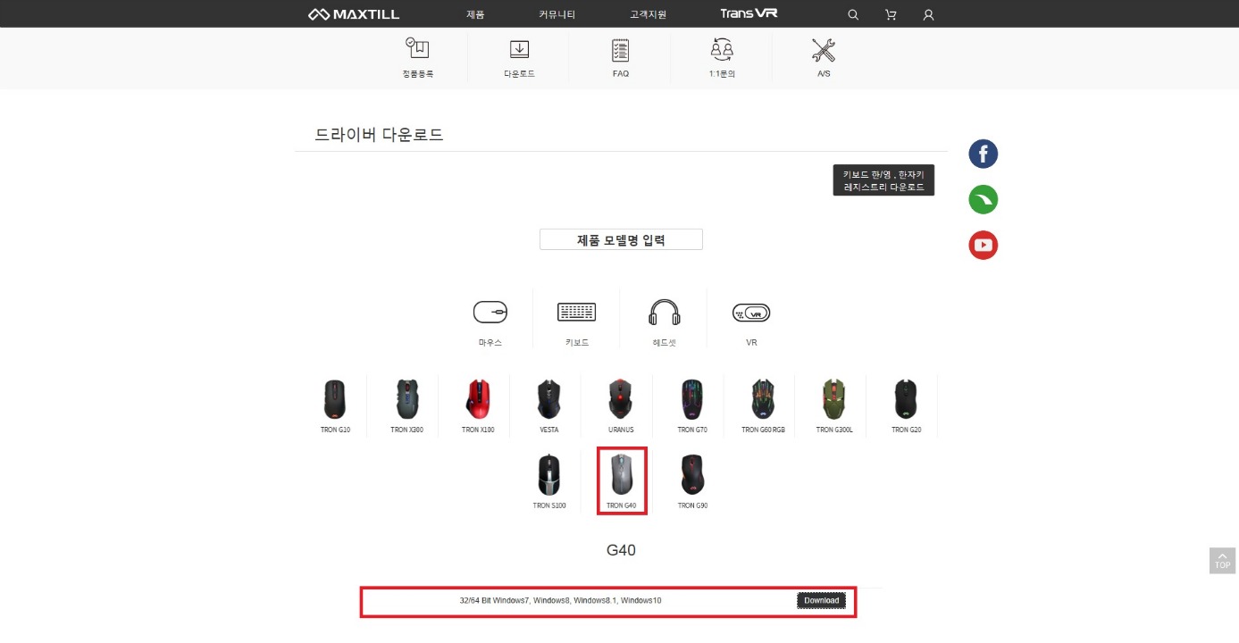http://www.maxtill.co.kr/support/download.php 에서 사용하시는 제품을 큭릭 하시면 아래에 다운로드 버튼이 생깁니다.