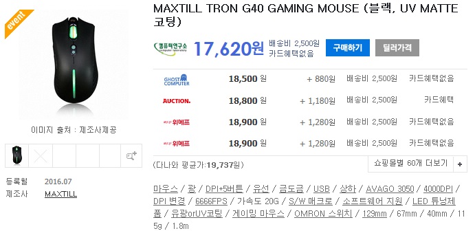 감귤동네 머니블랙홀에서 특가로 구매를 하게된 맥스틸 G40 게이밍 마우스 사용기 입니다.