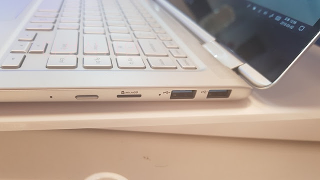 노트북의 오른쪽은 마이크로SD 카드 삽입구가 있으며