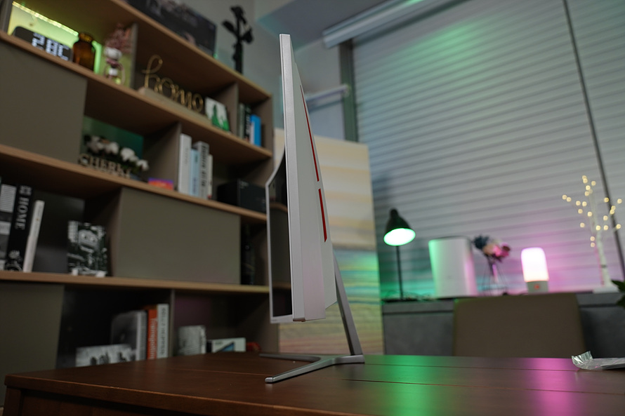 깔끔한 화이트 & 실버와 게이밍 모니터로써 아이덴티티가 느껴지는 레드 포인트가 인상적입니다.