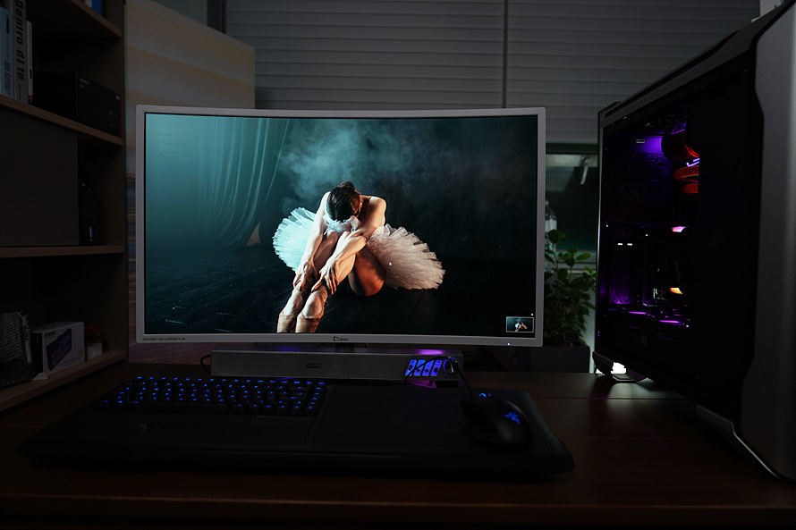 대화면 모니터들의 가장 큰 단점은 좌우 끝을 바라볼때 왜곡이 생긴다는 것인데요, 특히 32인치급이 되면 왜곡이 더 명확해지는데 1800R을 현실적인 화면과 몰입감을 유도하기에 최적화 되어있습니다.