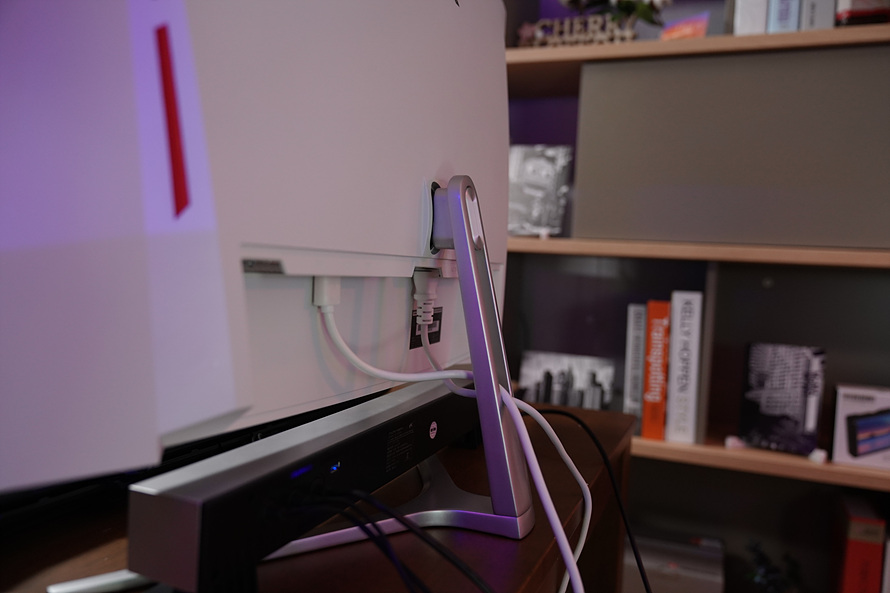 저는 개인적으로 패널 뒷부분의 레드 포인트가 너무 마음에 드는데요. 좋게 말하면 깔끔, 나쁘게 말하면 자칫 심심해질수도 있는 외형이 이 포인트 하나로 게이밍 모니터의 감성을 잘 표현해주고 있다고 생각합니다.