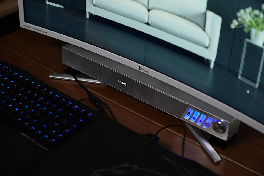 높이도 조절할수있는 제품들은 아무래도 스탠드의 안정성이 낮거나 튼튼하게 만들경우 제품의 가격이 현격하게 올라가기 때문에 틸트만 넣은거 같네요. 여튼 높이 조절은 되지 않지만 어지간한 사운드바는 모니터아래에 넣을수있는 수준입니다.
