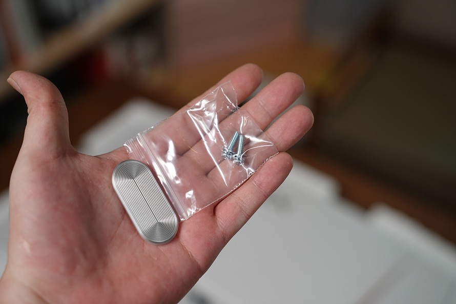 나사를 꼼꼼하게 다 쪼였다면 구성품에 포함된 커버를 이용하여 나사 체결부분을 깔끔하게 가릴수가 있습니다.
