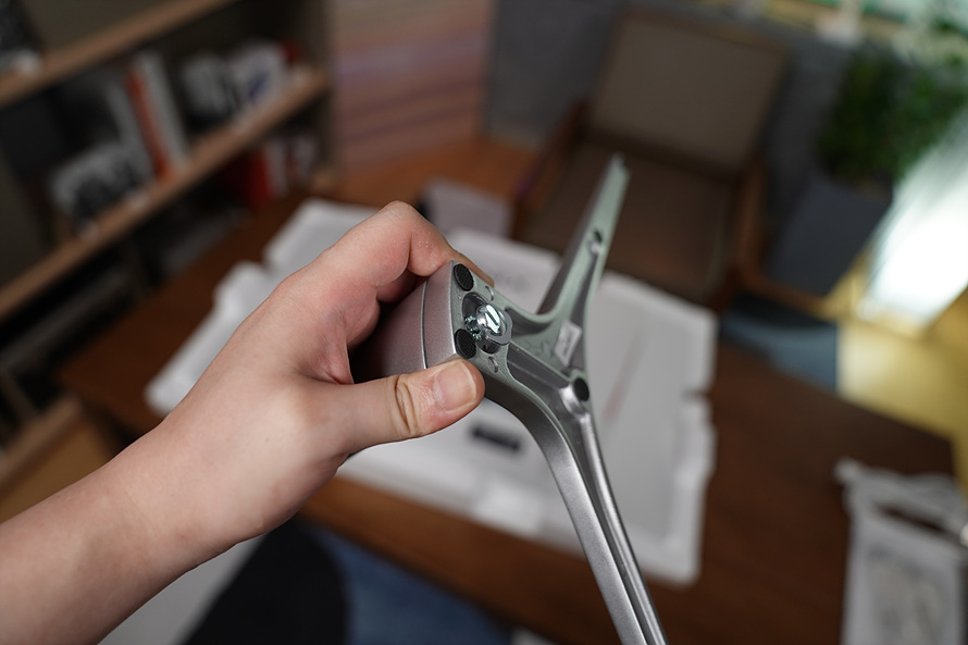 수직 스탠드와 스탠드 발 부분은 나사하나만 쪼이면 조립이되는 구조입니다.