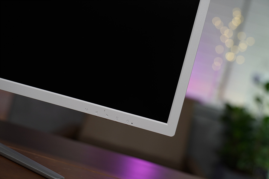 OSD 컨트롤 메뉴도 화이트 특유의 깔끔함을 유지 하면서도 직관성이 높은 음각으로 되어있구요. 번튼의 조작감은 너무 뻑뻑하지도 약하지도 않은 적당한 구분감을 가지고있습니다.