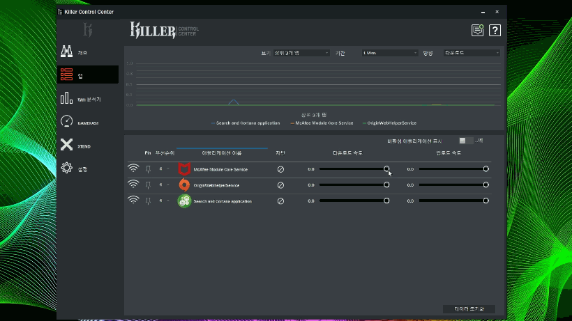 ▲ 또한, 킬러 컨트롤 센터 프로그램을 통해, 네트워크 트래픽과 대역폭 등을 네트워크 관리를 손쉽게 관리할 수 있습니다.
