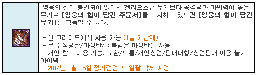 ▶ 영웅의 힘이 봉인된 무기 ▶ 영웅의 힘이 담긴 주문서