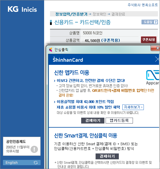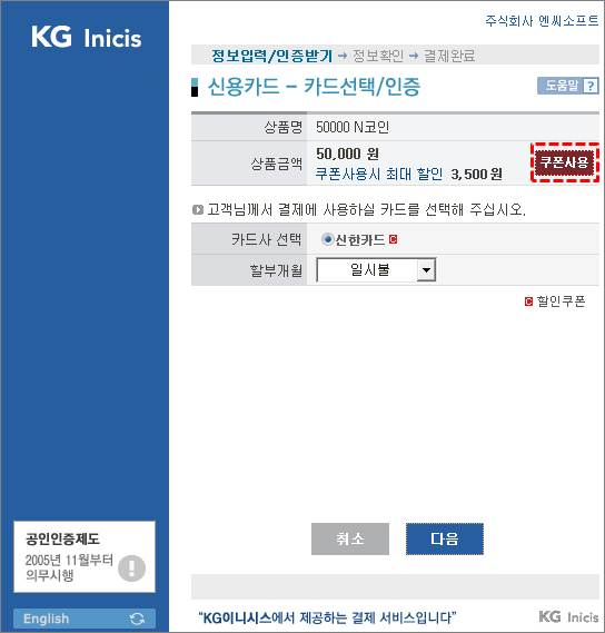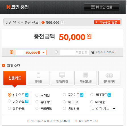 신한카드로 N코인을 충전할 경우 금액에 따라