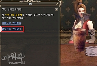 기란 명품관 아이템 구매 시 아데나와 결정체, 두가지로 구입 변경 제안